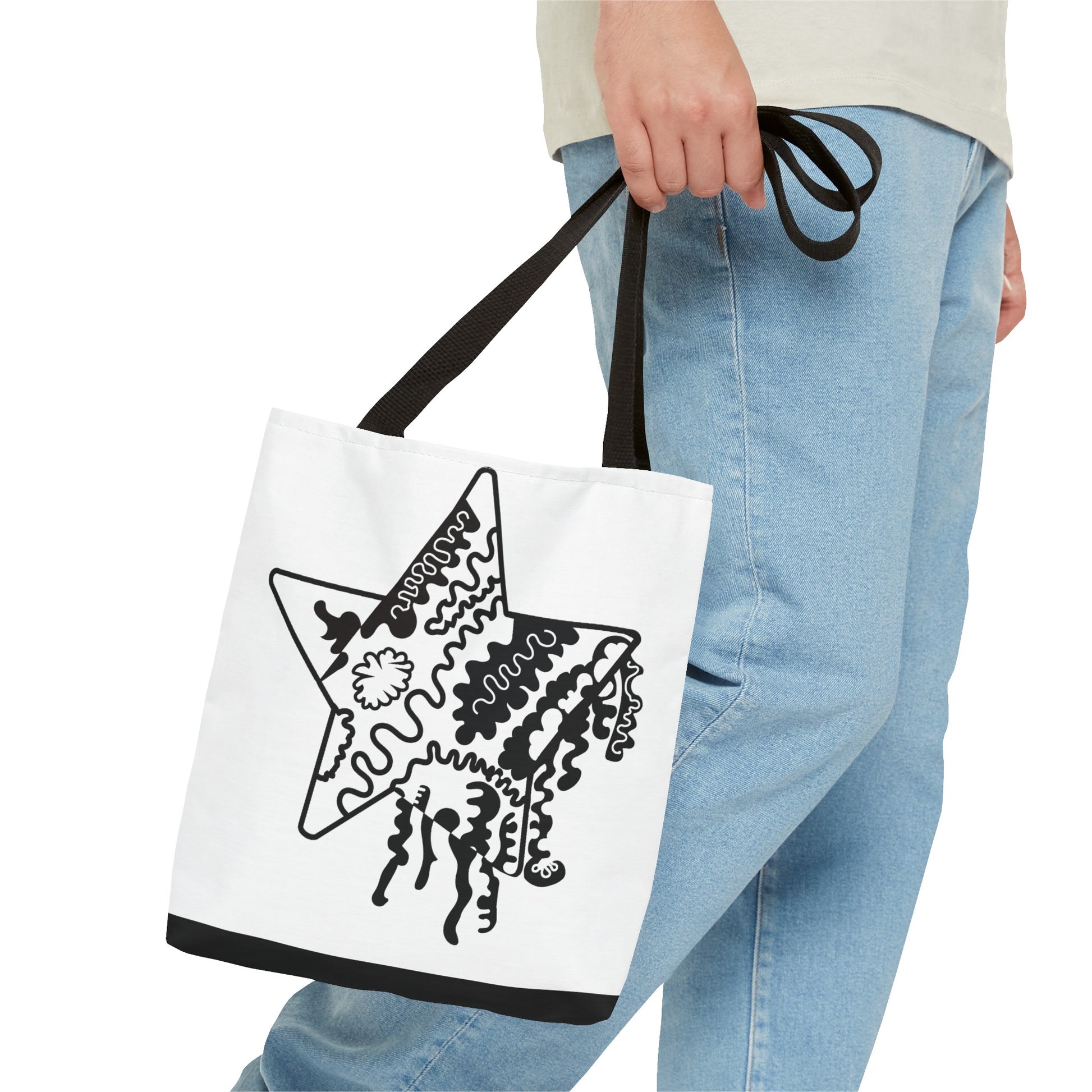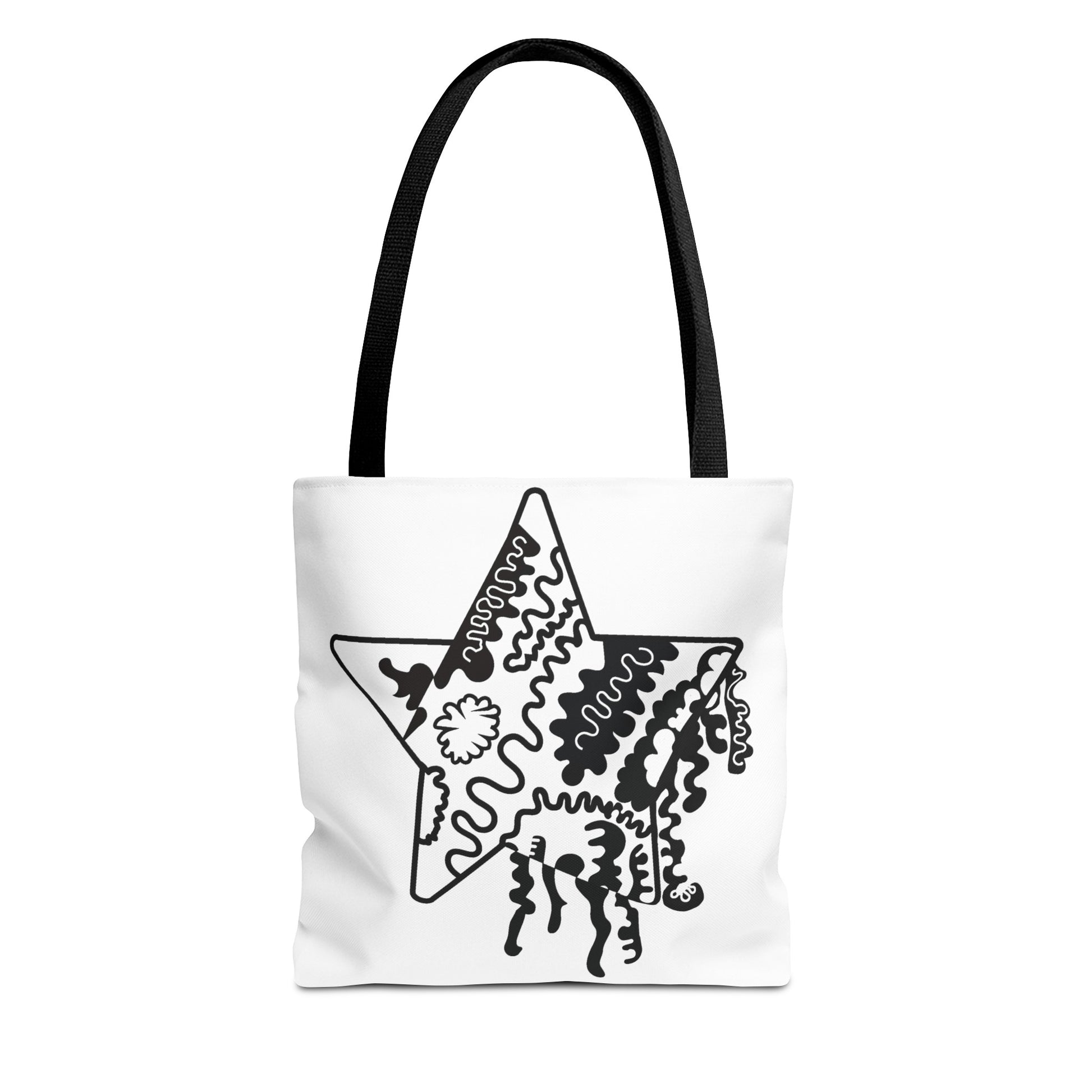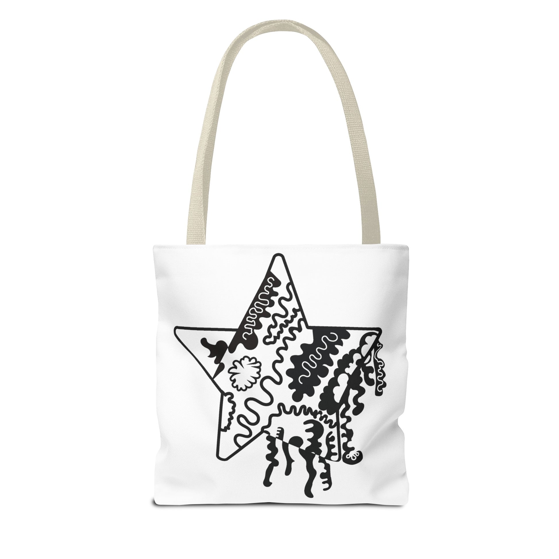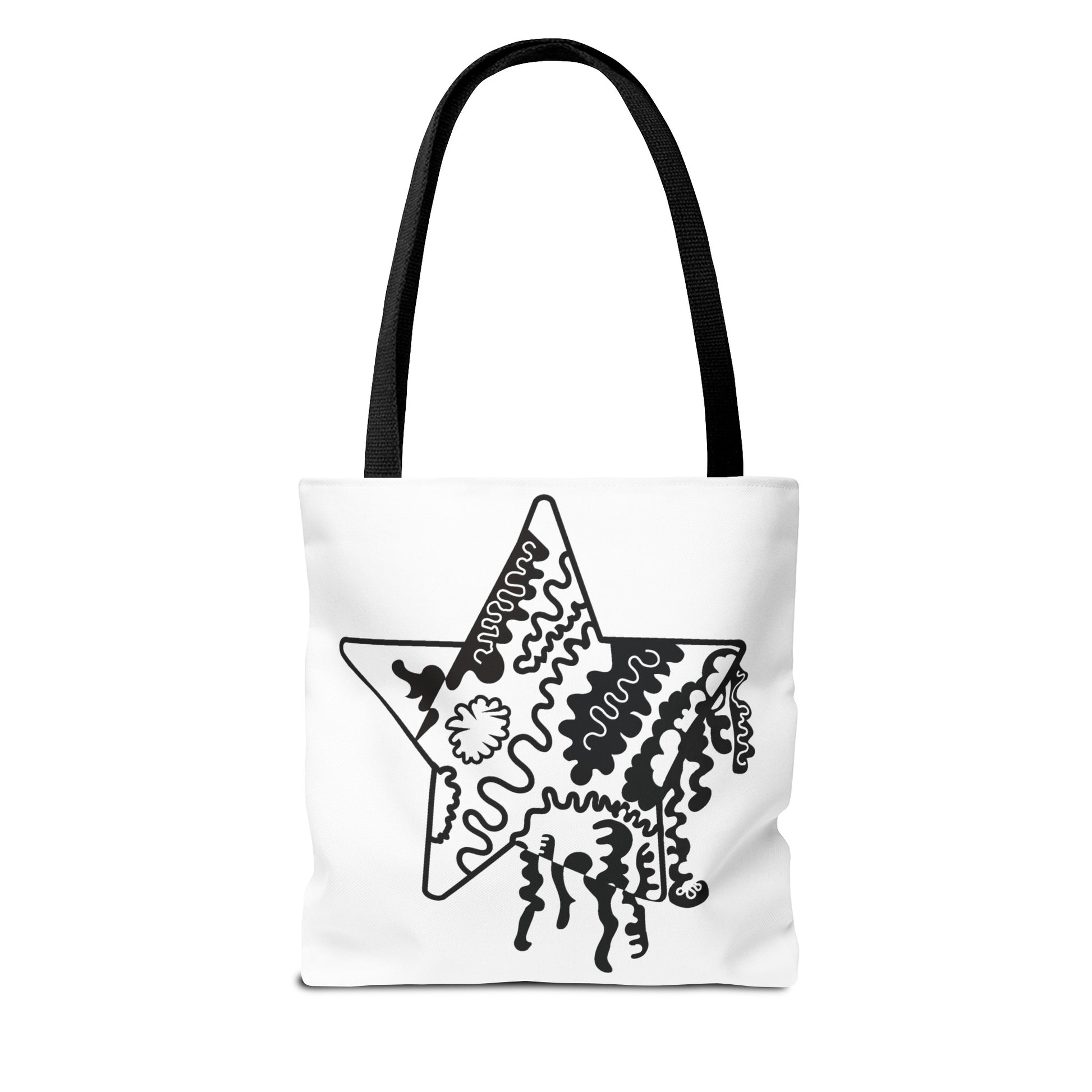 Copy of Star Makes Art Signature Logo in Black + White on a Tote Bag - Front and Back Feature a Black Logo on a White Background
