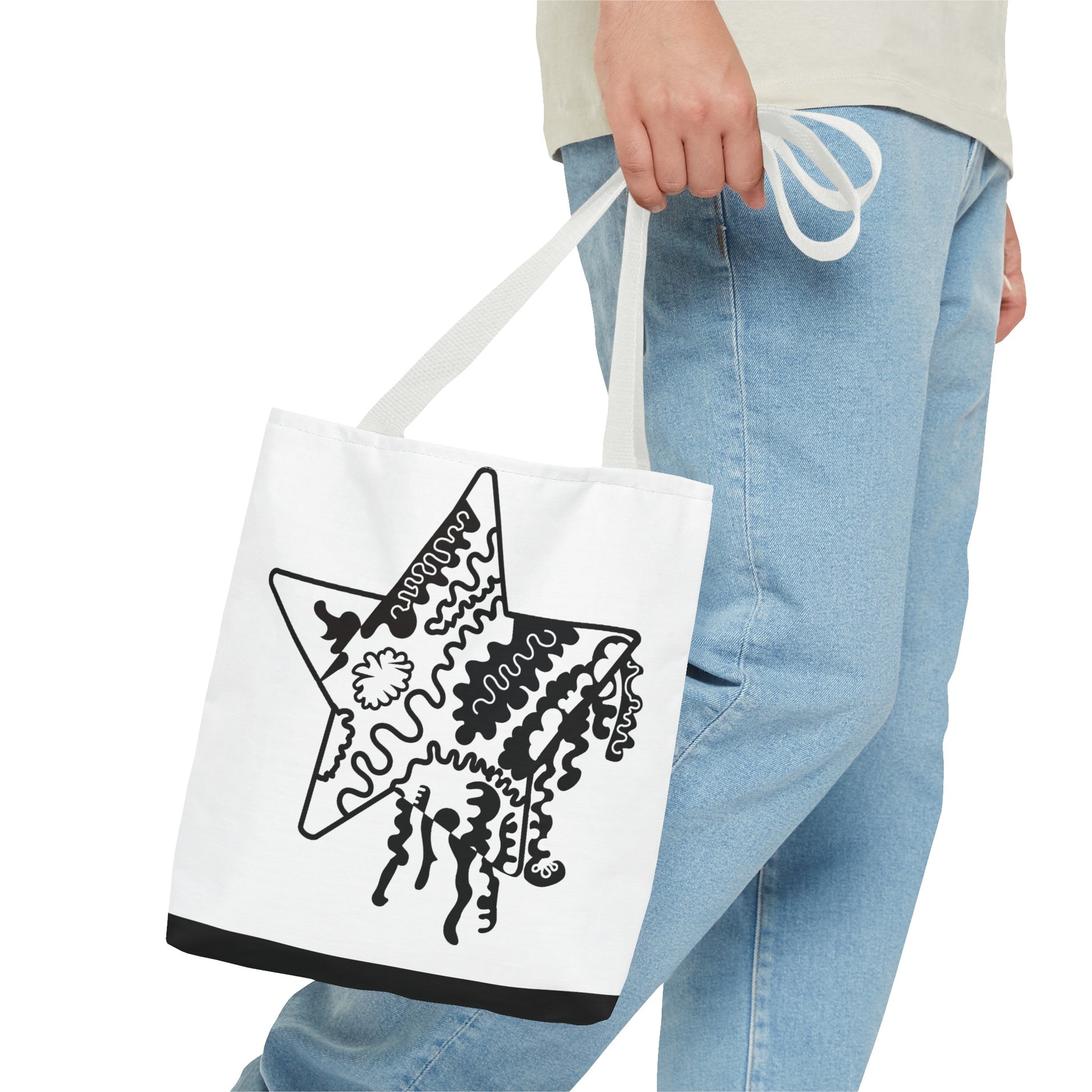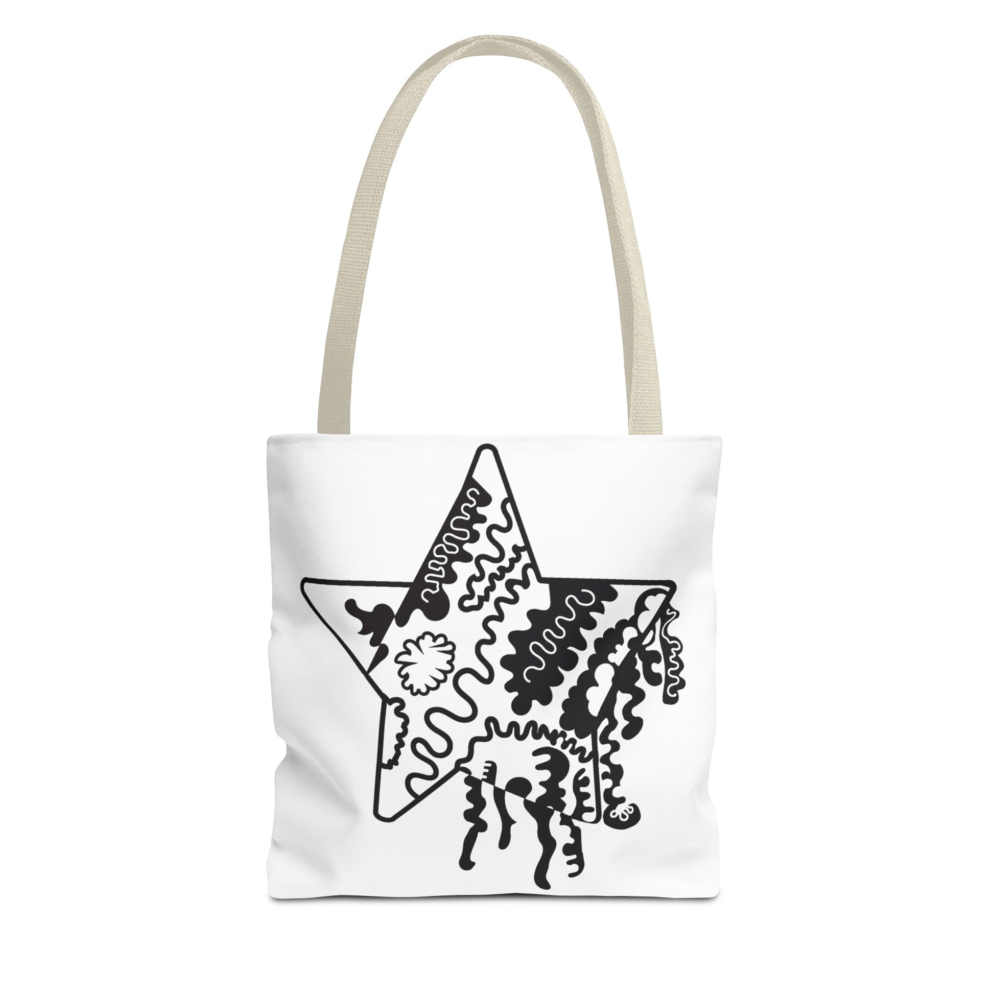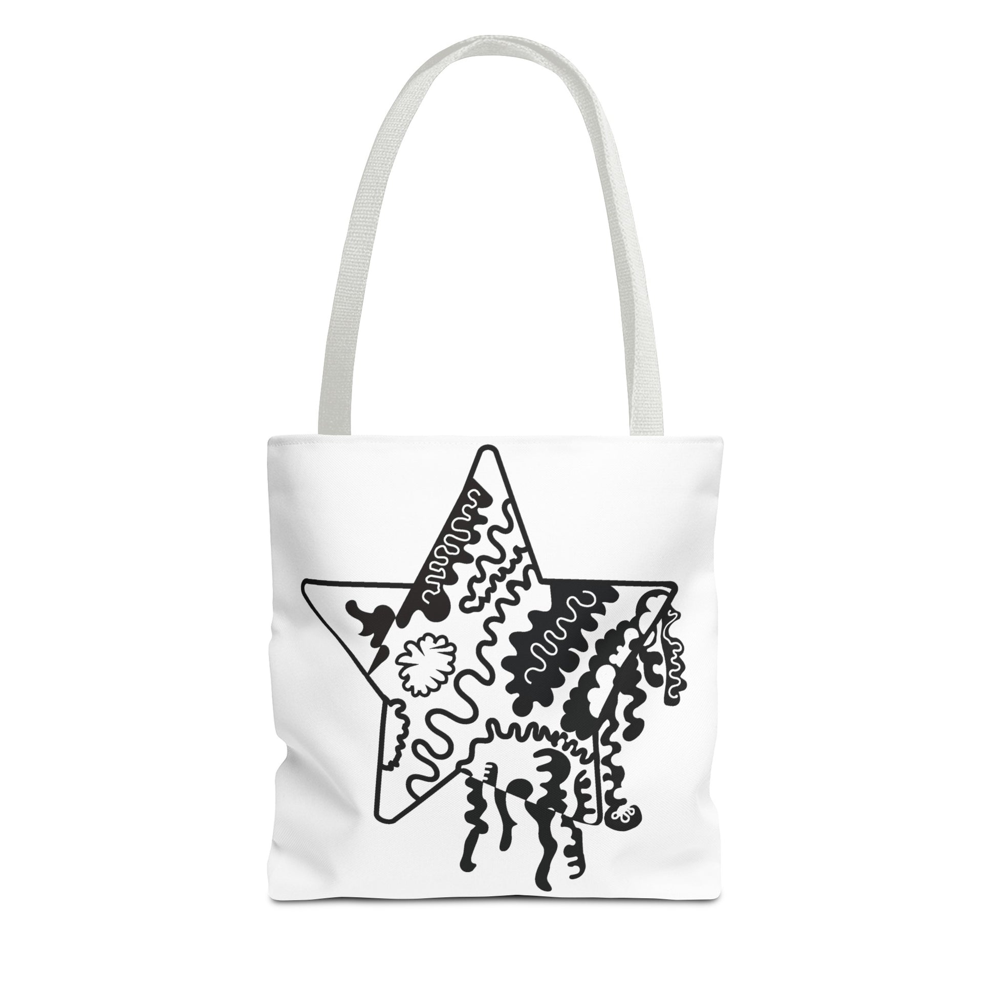 Copy of Star Makes Art Signature Logo in Black + White on a Tote Bag - Front and Back Feature a Black Logo on a White Background