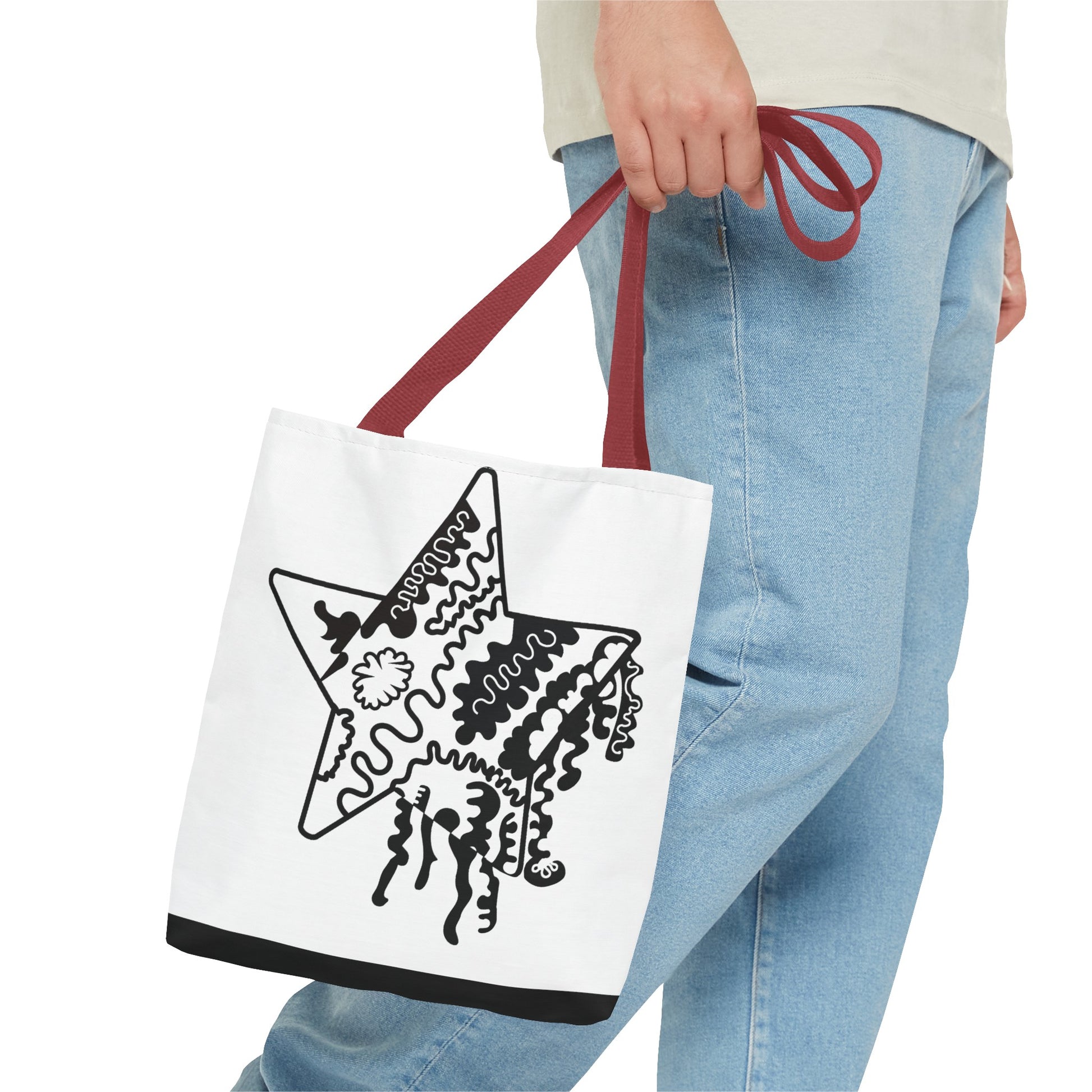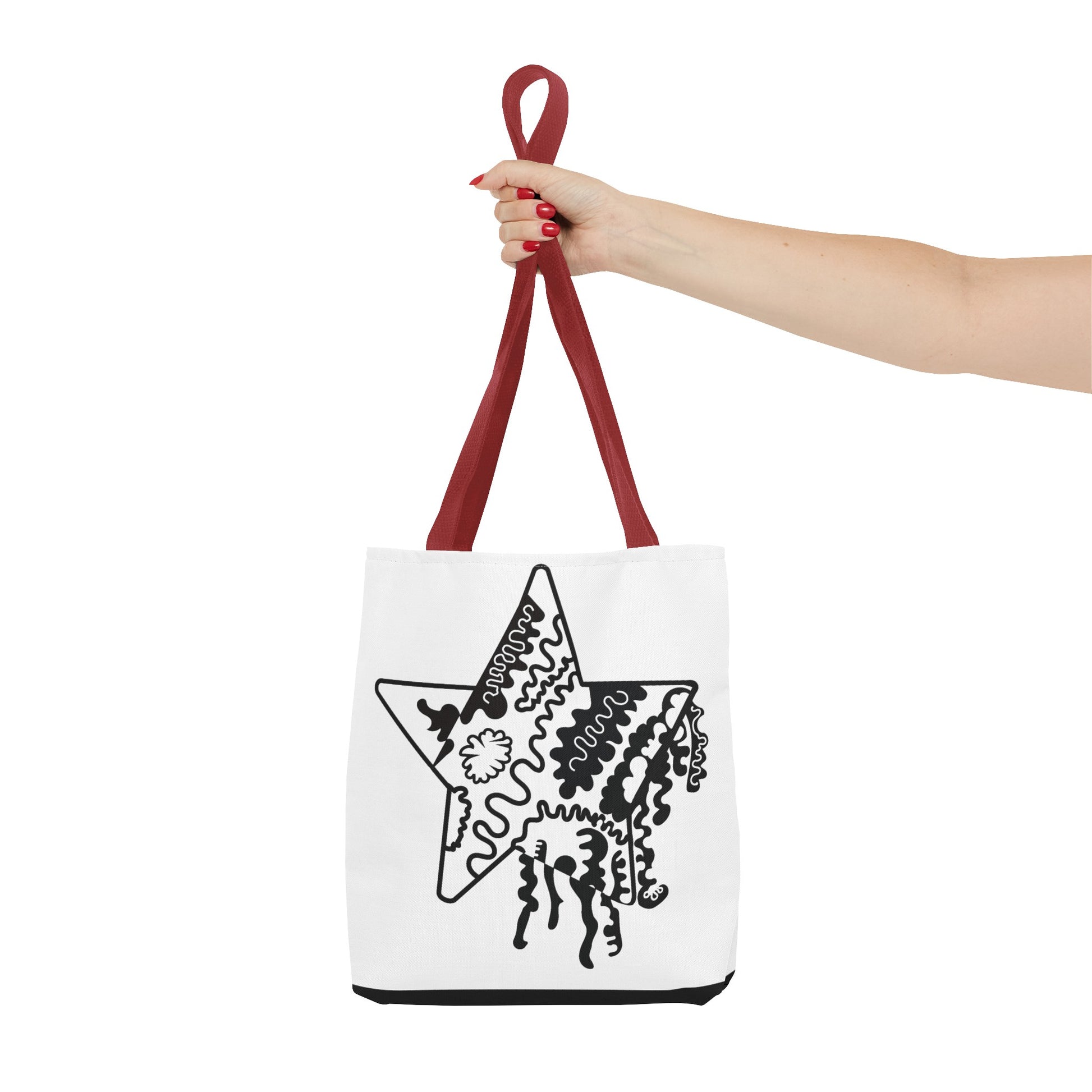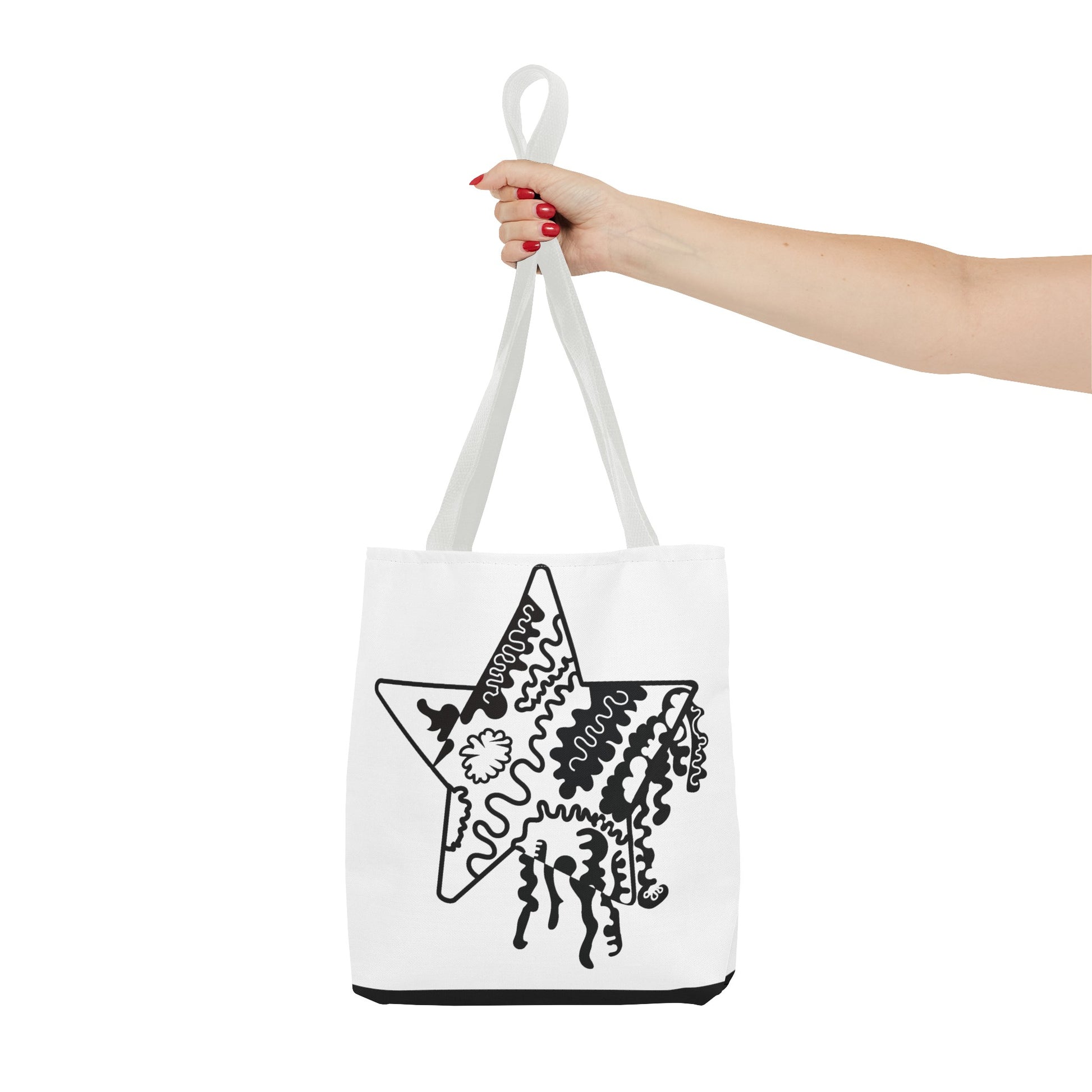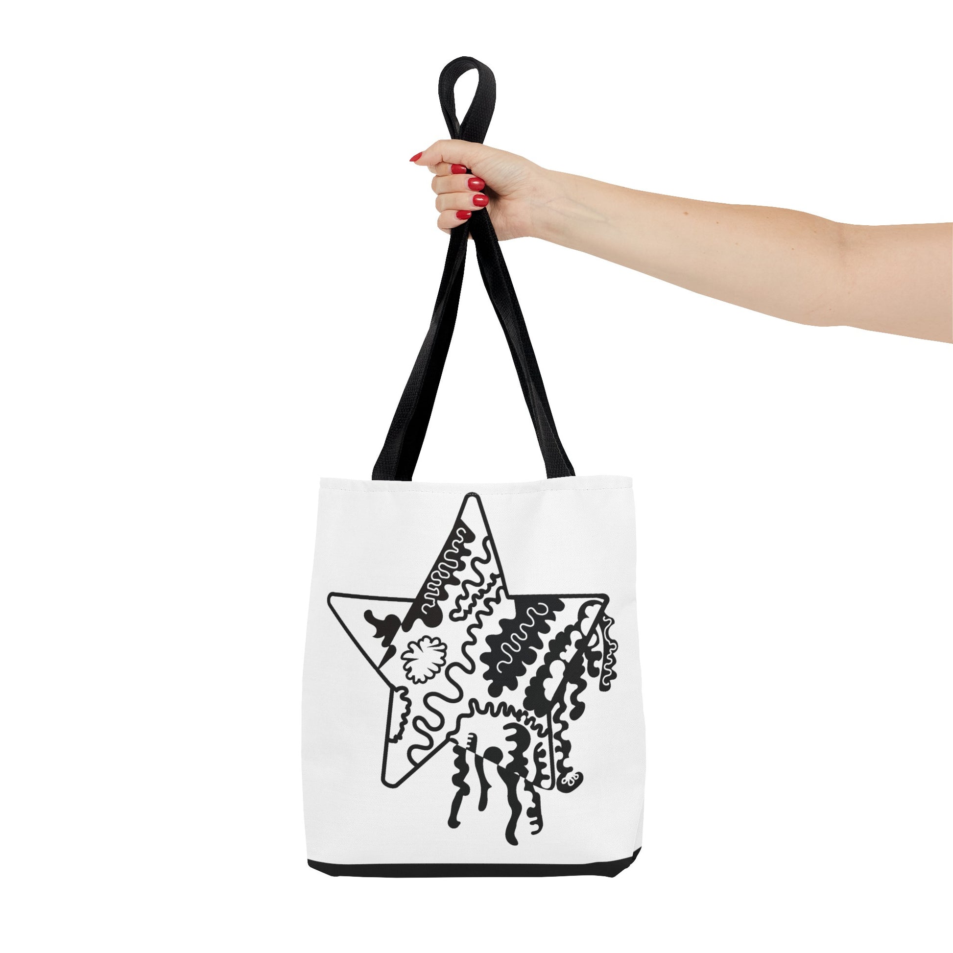 Copy of Star Makes Art Signature Logo in Black + White on a Tote Bag - Front and Back Feature a Black Logo on a White Background